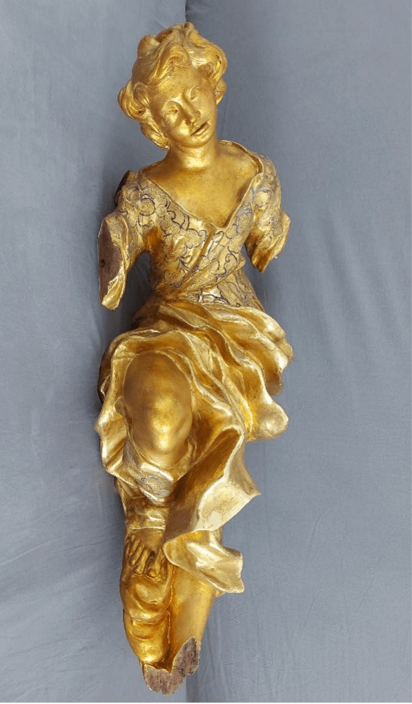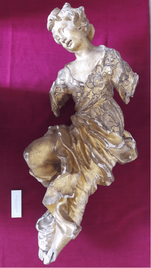 Konzervatorsko restauratorski radovi na pozlaćenom Kipu anđela, nepoznati majstor 18.st. drvo, rezbareno i puncirano i pozlaćeno, dimenzija 85x40cm, smješten u Palači Sorkočević (Biskupskoj palači) u Dubrovniku, vlasništvo Dubrovačke biskupije – Dioecesis ragusina. Na drveni nositelj nanesena je kredna preparacija. Skulptura je pozlaćena zlatnim listićima, a vidljiva je i punca gornjem dijelu draperije, na preparaciju je prethodno nanesen crveni bolus. Na draperiji su oštečenja koja sežu do drvenog nositelja kao i na krilima i stopalima. Odignuća i ljuskanja u sloju preparacije su konsolidirana injektiranjem zagrijane 10%-tne otopine zečjeg tutkala. Na injektirana područja stavljeni su mali utezi da bi pritiskom postigli povezivanje veziva. Manji nedostatci rezbarije nadomješten je sa aralditinim kitom. Na nedostajući dio izbušene su male rupice, u njih je neneseno i sintetičko ljepilo drvofix, u koje idu drveni štapići, radi bolje stabilnosti i čvrstoće, zatim na njima je oblikovan dio u aralditu kitu SV427/HV427 . Na minimalne zone za uljnu pozlatu nanesen je akrilni sloj boje žućkastog okera.Pozlata na poliment je izvedena polaganjem listića 23-karatnog zlata na podlogu uz aktiviranje veziva etanolom. Radove izvršila i vodila Monika Lolić Pustić(Ars Lignum) u listopadu 2020.g.