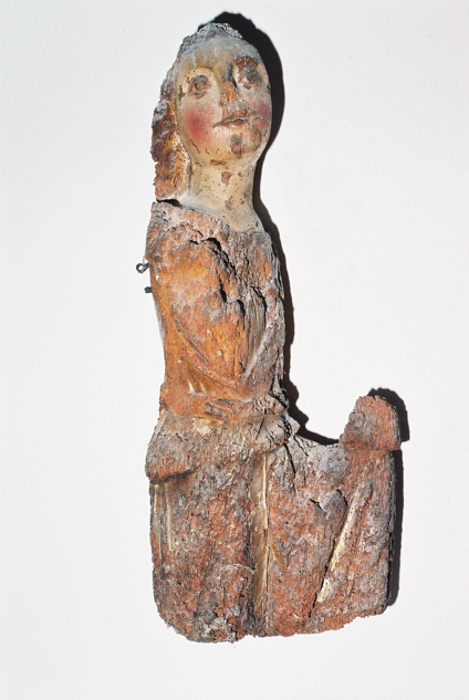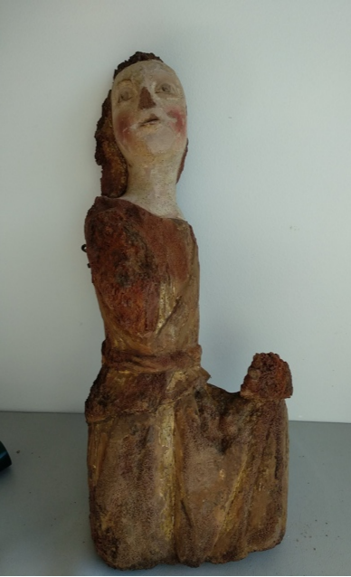 Konzervatorsko restauratorski radovi na kipu arhanđela Mihovila, drvo, polikromirano, visina 54cm, 15 st. iz inventara Župnog muzeja iz Lopuda vlasništvo Dubrovačke biskupije-Dioecesis Ragusina, župe Gospe od Šunja. Finoća izvedbe i količina oštećenja, na ovoj umjetnini odredila je i pristup restauraciji, koji će se u ovom slučaju zaustaviti na konzervaciji. Skulptura je dugi niz godina izložena utjecaju soli, naglim promjenama temperature i vlage, te napadu insekata (Slika br.1). Tijelo skulpture izglodano je dugačkim i širokim hodnicima, te mjestimično pretvoreno u spužvastu masu. Na površini se nalazi bjeličast sloj prašine i soli. Nakon čišćenja i konsolidacije, kitanje je izvedeno u svrhu konsolidacije, tj. osiguranja rubova ostataka oslika i pozlaćenog sloja, a ne u svrhu rekonstrukcije nedostajućih dijelova plastike, osnove ili slikanog sloj. Na skulpturi su već nakon čišćenja uočljivi vrlo pomno izvedeni detalji, poput punce na rubu izreza haljine i lazurnih linija uz rubove nabora draperije. Na dnu skulpture sačuvani su fragmenti oslika (Slika br.2). Izuzev ruku, koje su trajno izgubljene, ostatak figure je moguće u potpunosti rekonstruirati, naravno u virtualnom smislu ili kroz kopiju. Radove izvršila i vodila Monika Lolić Pustić (Ars Lignum) u svibnju 2019.g.